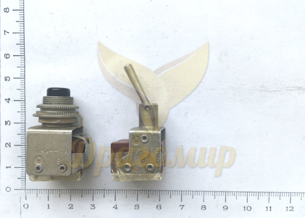 Данный раздел посвящен кнопочным переключателям и тумблерам выпуска до 1982 года, их отличительной особенностью являются белые выводы. В группу входят такие переключатели, как ПКн2, ПКн4, ПТ3, ПТ8 и т.п., предназначенные для коммутации низковольтных цепей постоянного и переменного тока. Они использовались в самой разной бытовой и промышленной аппаратуре, выпускались в большом количестве.