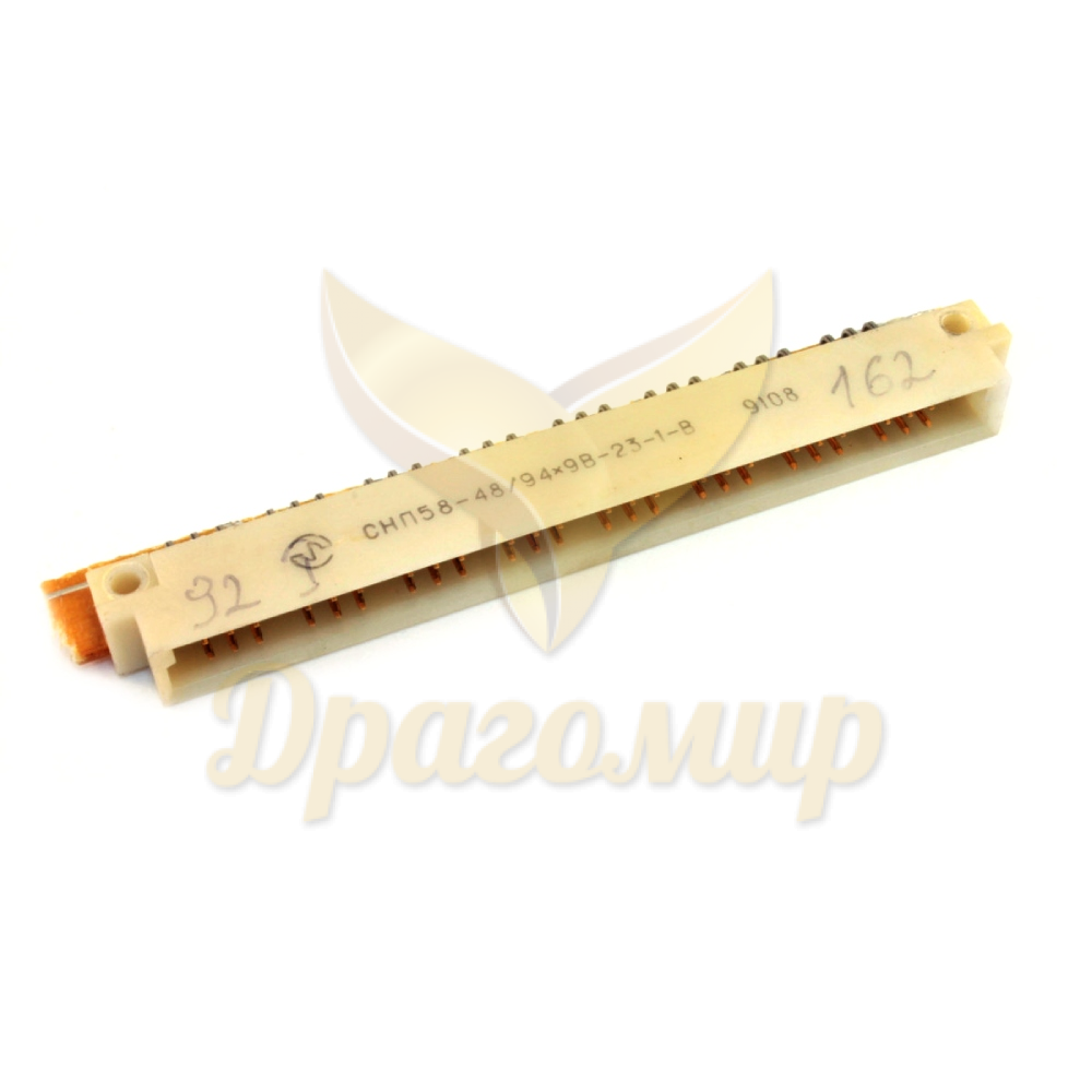 Вилка СНП 58-32 (Соединитель Ножевой прямоугольный Печатного монтажа) выполнена из пластика голубого цвета, имеет 32 контакта, расположенных в два ряда. Разъемы данного типа широко использовались в СССР в различной электронной аппаратуре, позволяя соединять вручную различные блоки. Для обеспечения надежной работы ламели покрывались тонким слоем золота, что и определяет их ценность.